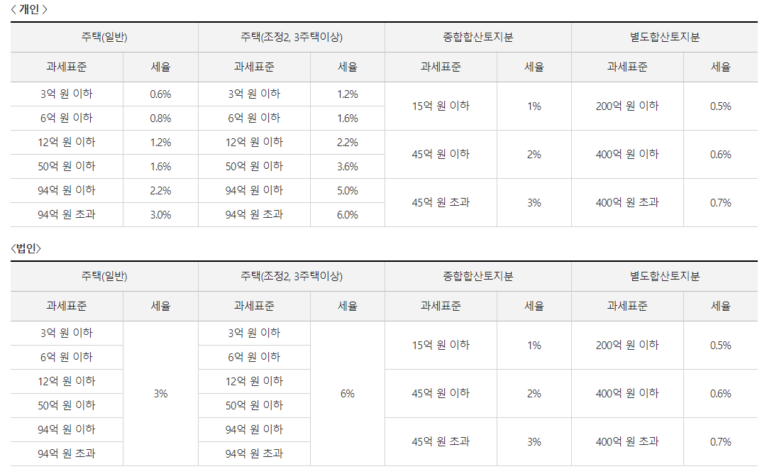 - 세율은 0.5%에서 2%까지 누진적용