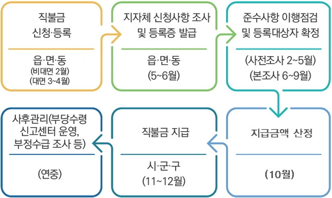 공익직불금 신청 후의 처리 절차입니다: