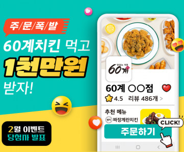 - 60계 치킨 공식 앱 설치 시 웰컴 쿠폰 지급